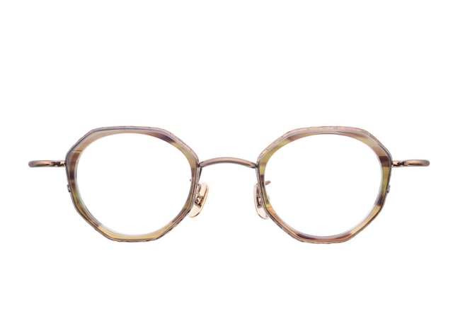 チタンとアセテートの色と質感の調和が美しいコンビネーションフレーム。 リムのアウトラインはパントゥベースの八角形、レンズシェイプは曲線的なパントゥで、ナチュラルさと個性を併せ持ったデザインです。 よりまつ毛に当たりにくいよう工夫されたクリングスも魅力。 コンパクトなサイズ感で、お顔小さめの方、度数強めの方にもおすすめ。 【素材】 フレーム:チタン、アセテート 【生産国】 日本 【付属品】 ケース・メガネ拭き 【サイズ】 テンプル長:135mm レンズサイズ(縦×横):約35mm×41mm ブリッジ幅:24mm