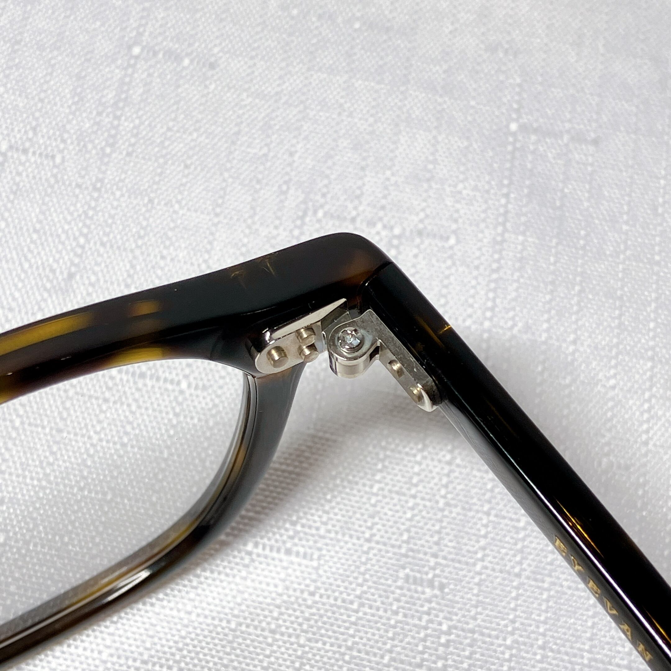 2021SSでリリースされた「Sadler」のリムを華奢にリデザインしたモデル。フロントデザインは、フレンチヴィンテージの雰囲気はそのままに0.1mm単位で再度設計し、テンプルは1950年代のハンドメイドフレームをモチーフに、このモデルに合わせて一からデザインした。丁番にはデザインとしても美しい置き丁番を採用するなど、細部までEYEVANらしさを表現したモデルとなった。