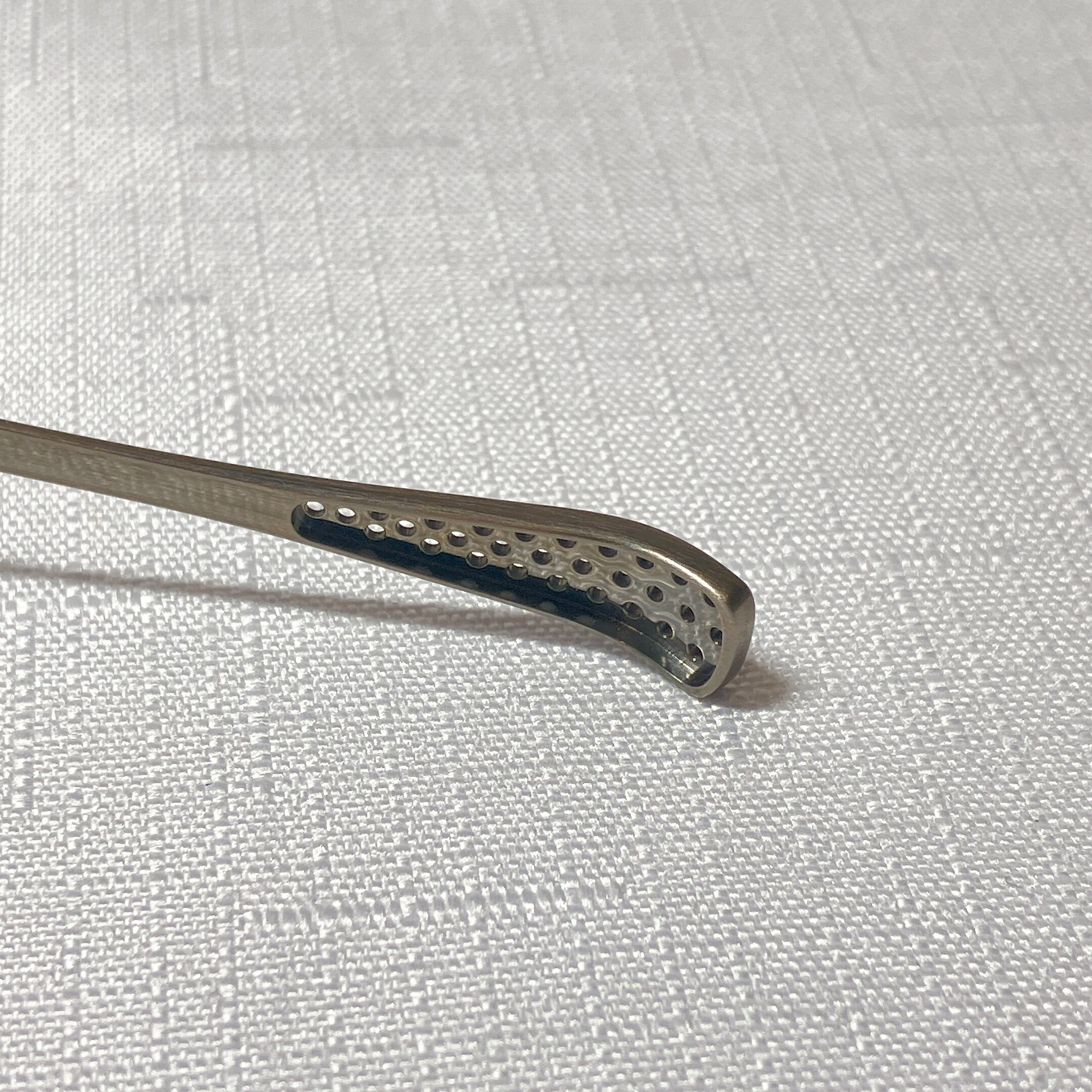 2021SSでリリースされた「Balure」で採用された、しのみ部分にレーザーで1つ1つ穴を空けることにより唯一無二なデザインとなったストレートテンプル『 EVPS (EYEVAN PERFORTED STRAIGHT) TEMPLE』に、新素材により実現可能となった0 .7mm×2. 5 mmの上面がフラットなオリジナルリム『EVFT(EYEVAN FLAT TOP)-Titanium Rim』を組み合わせたモデル。レンズシェイプには柔らかなクラウンパントを合わせ、全体的に装飾を抑えたモダンでミニマムなフレームとなった。