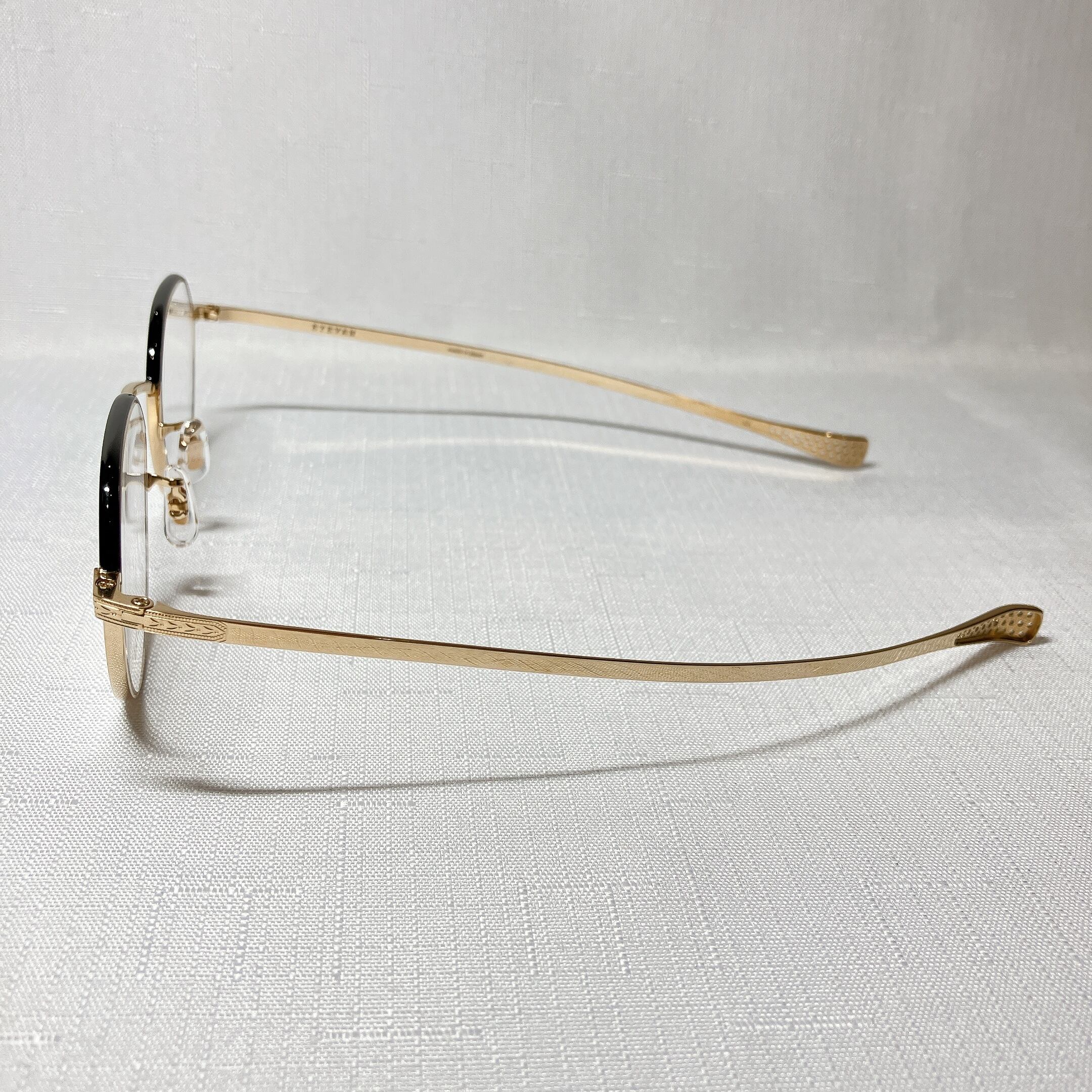 2021SSでリリースされた「Balure」で採用された、しのみ部分にレーザーで1つ1つ穴を空けることにより唯一無二なデザインとなったストレートテンプル『 EVPS (EYEVAN PERFORTED STRAIGHT) TEMPLE』に、新素材により実現可能となった0 .7mm×2. 5 mmの上面がフラットなオリジナルリム『EVFT(EYEVAN FLAT TOP)-Titanium Rim』を組み合わせたモデル。レンズシェイプには柔らかなクラウンパントを合わせ、全体的に装飾を抑えたモダンでミニマムなフレームとなった。