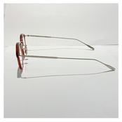 熟練の職人によって、ロー付けを行わずプレスでミル模様を鮮明に入れながら別々のパーツの様に見せた一体型トップバーに、プラスチックのリムを合わせたコンビネーションフレーム。