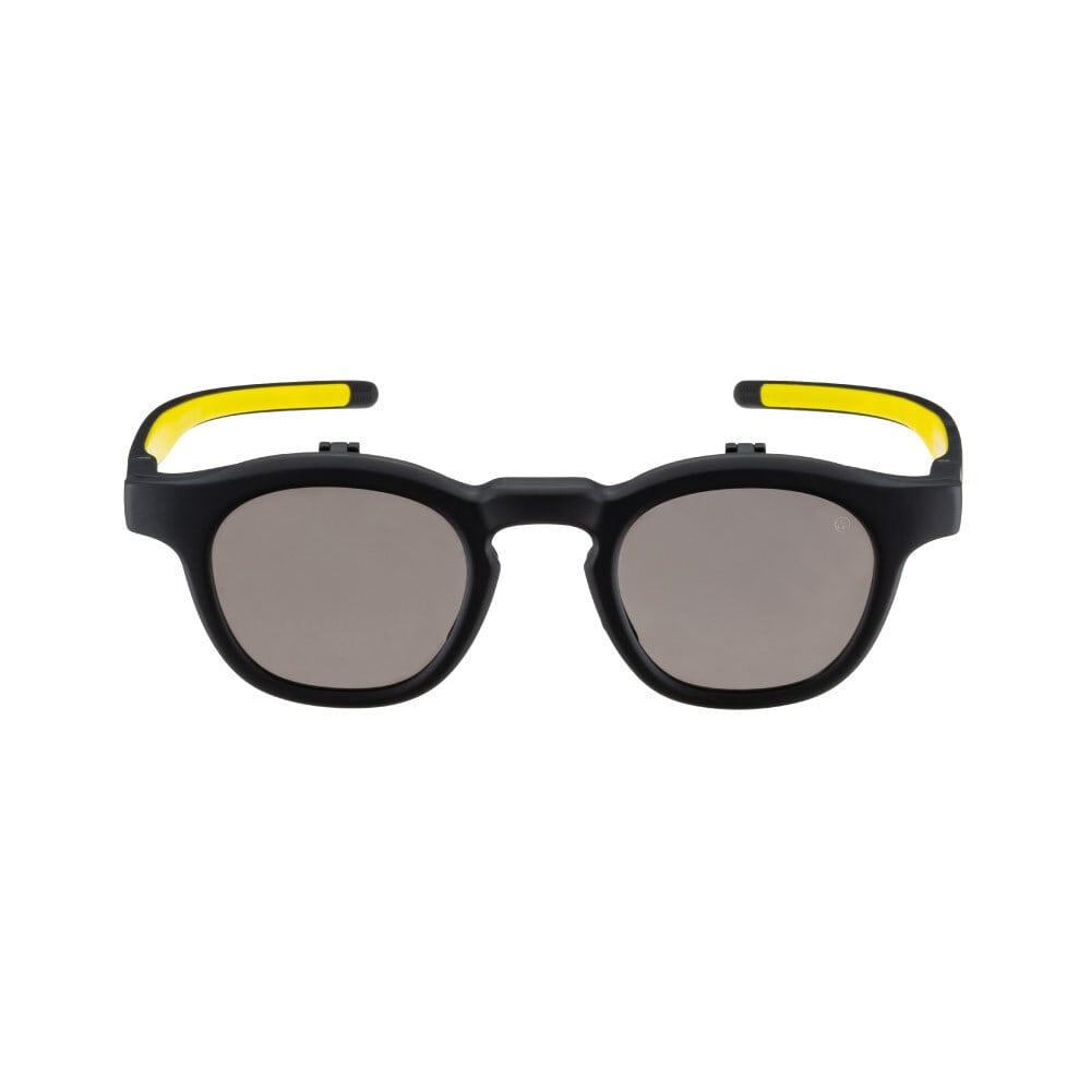 Eyevol初となる”FLIP UP”モデルのALOは何度も試作を重ねて完成に至った意欲作。通常、メタルを組み合わせることの多いフロントバックをインジェクションで構成することによりコマ部分を一体で形成することに成功しました。