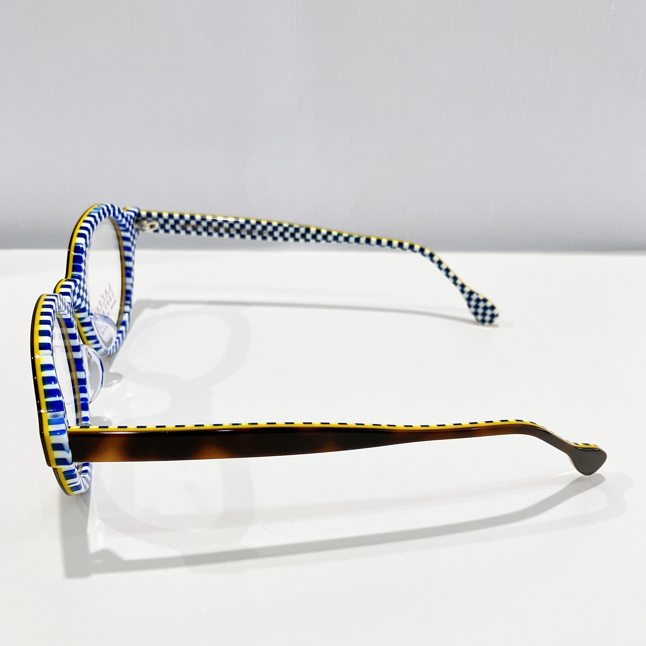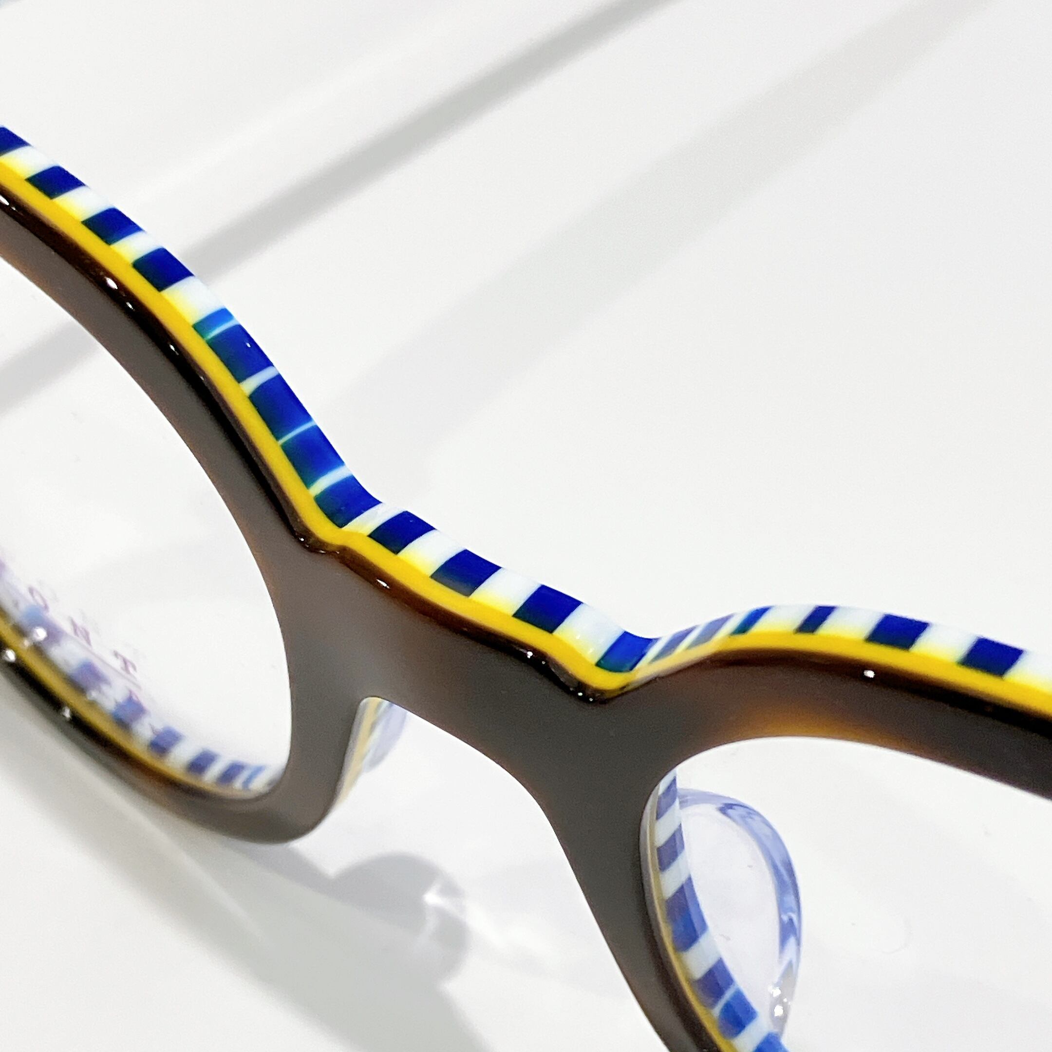 クラシックなフレームラインをベースに、繊細な柄や独自のカラーコンビネーションを取り入れることで、掛ける人の表情を華やかに引き立てます。