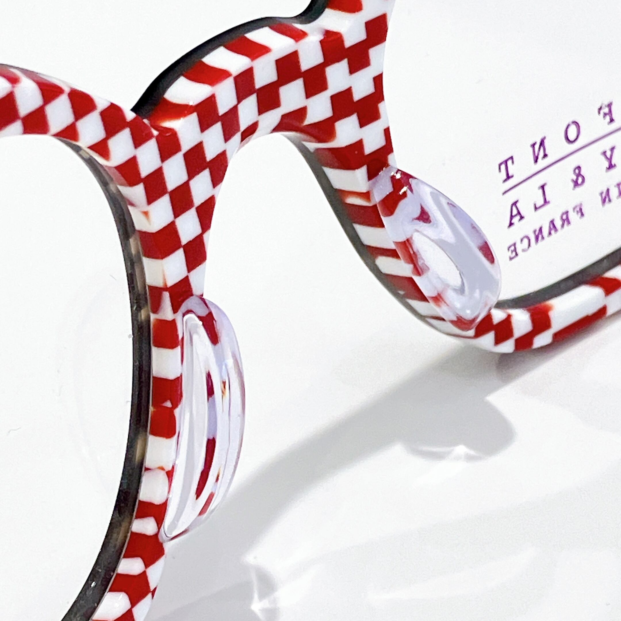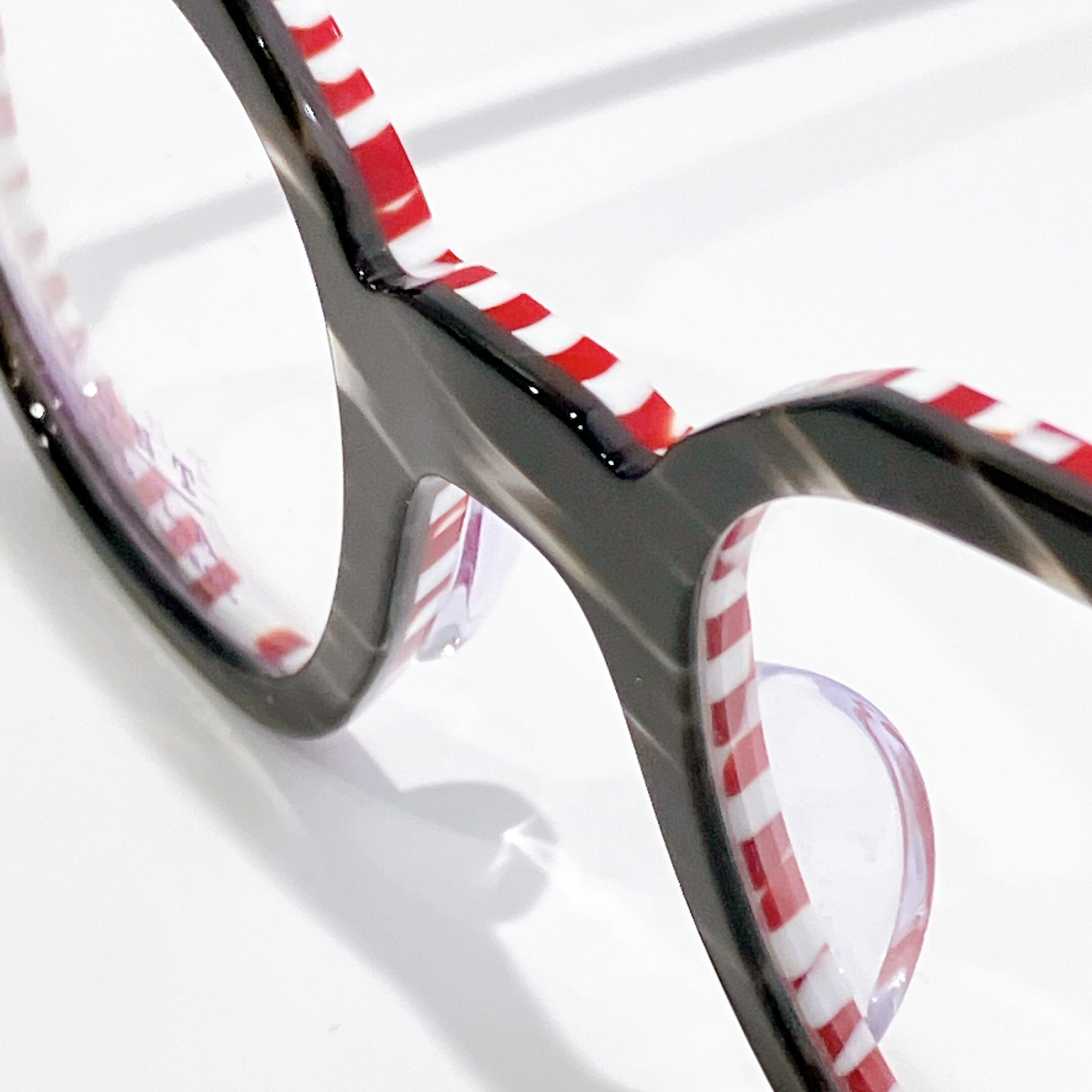 クラシックなフレームラインをベースに、繊細な柄や独自のカラーコンビネーションを取り入れることで、掛ける人の表情を華やかに引き立てます。