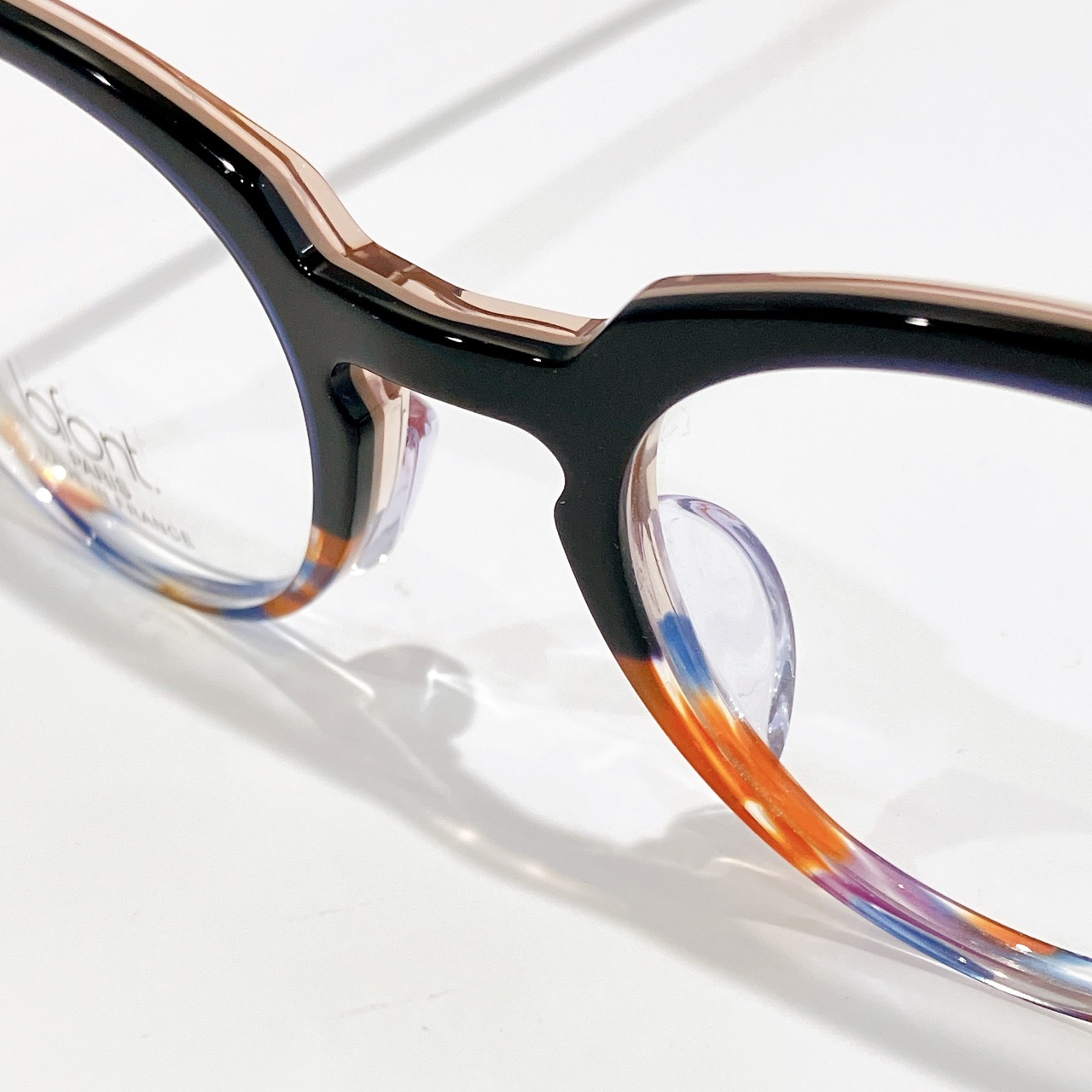 クラシックなフレームラインをベースに、繊細な柄や独自のカラーコンビネーションを取り入れることで、掛ける人の表情を華やかに引き立てます。