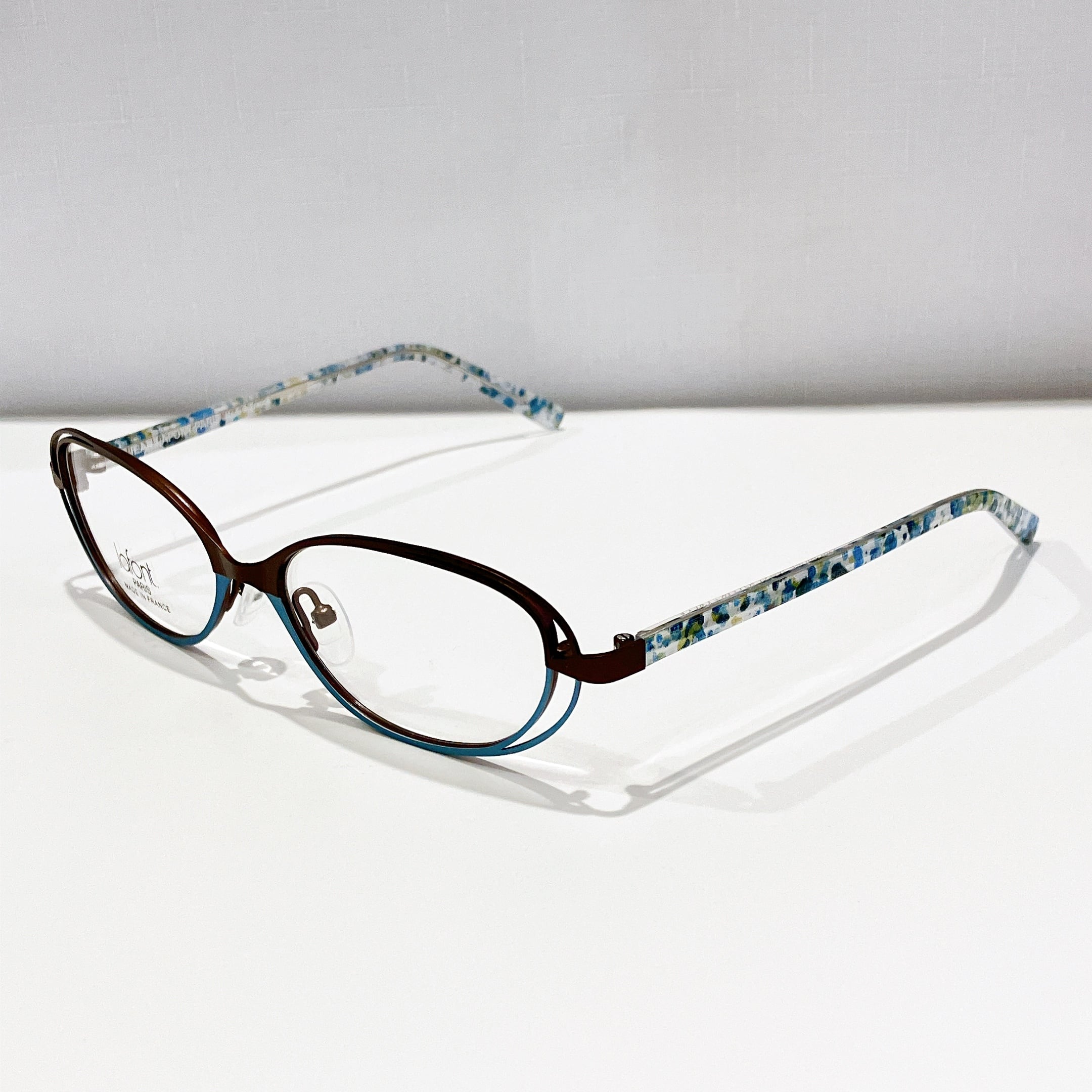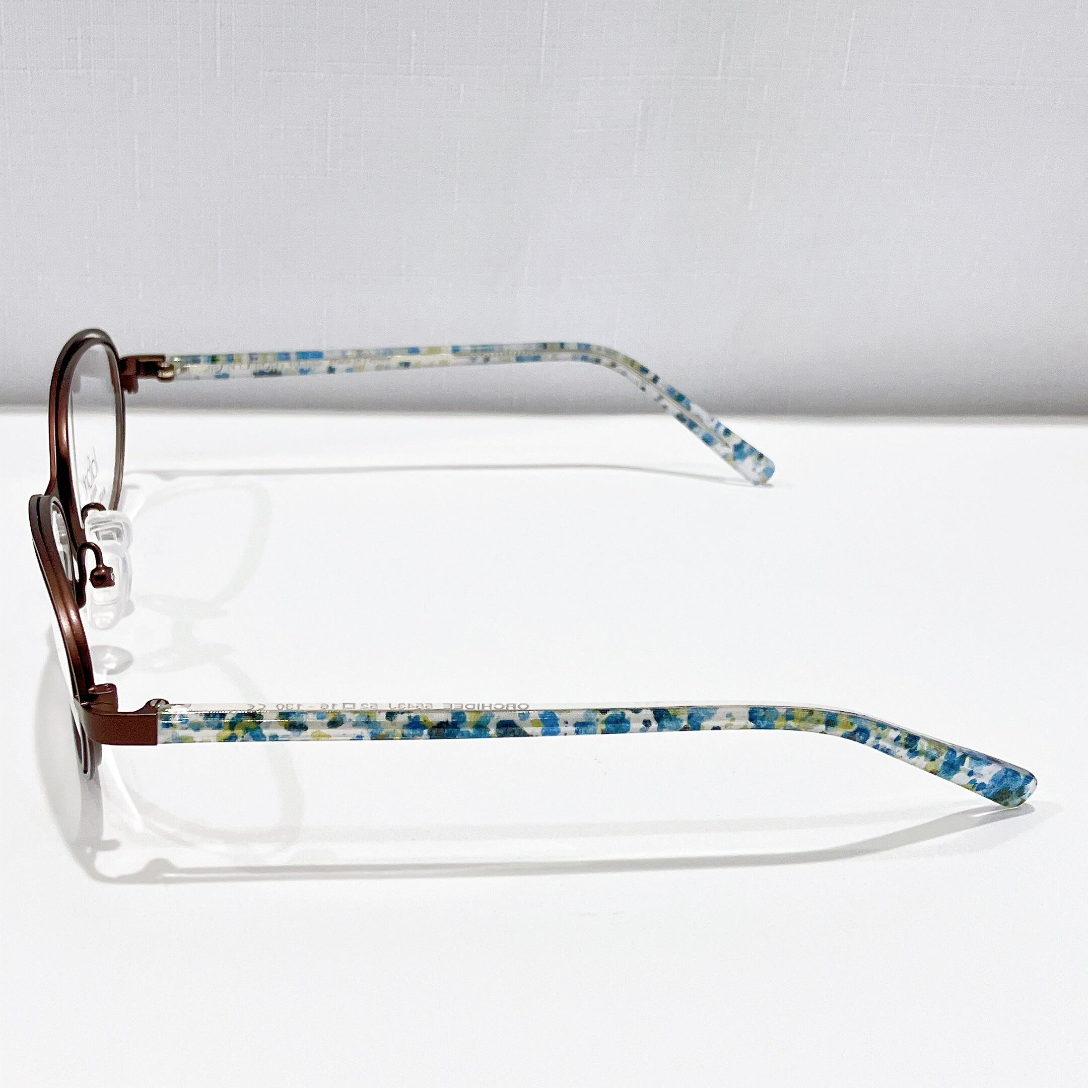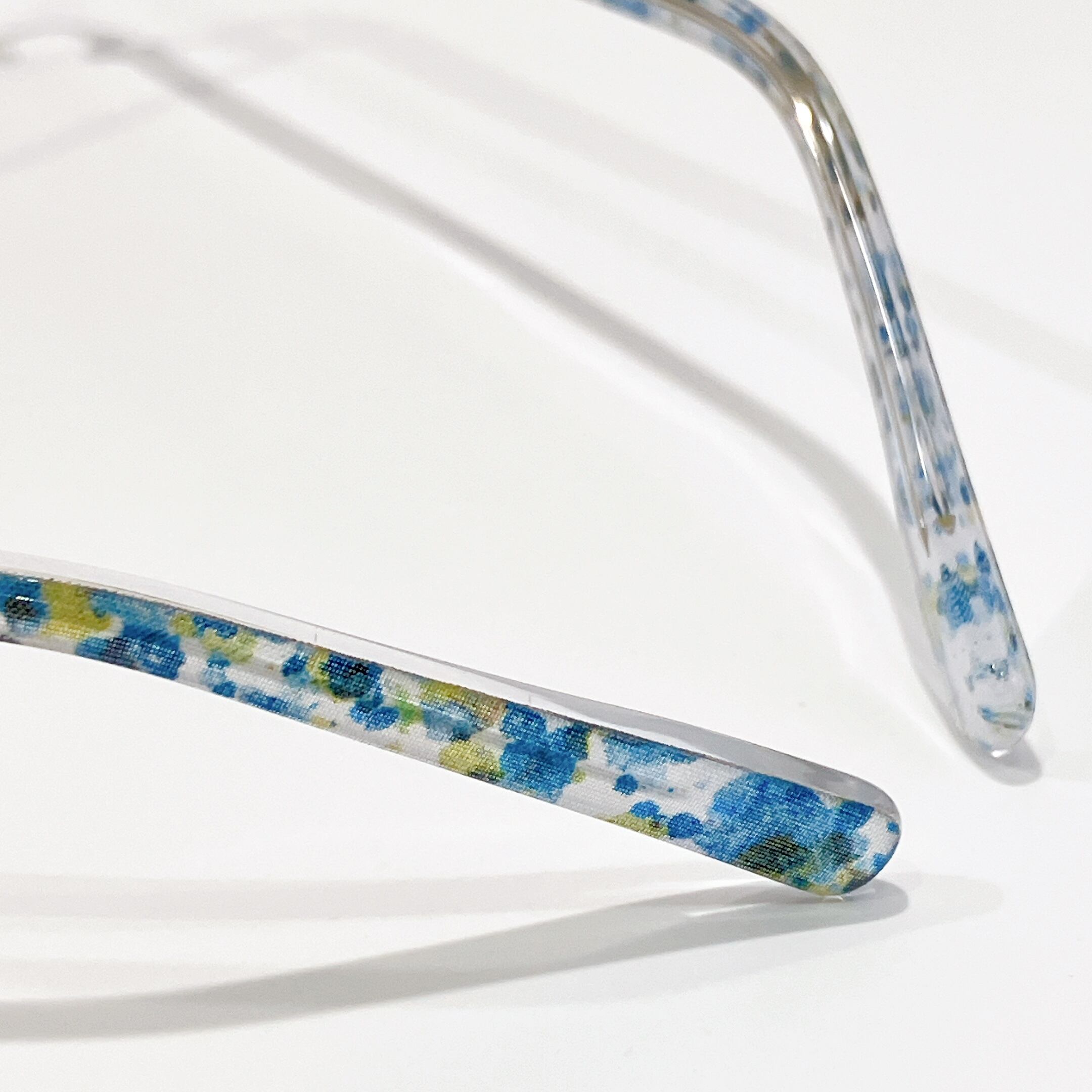 クラシックなフレームラインをベースに、繊細な柄や独自のカラーコンビネーションを取り入れることで、掛ける人の表情を華やかに引き立てます。