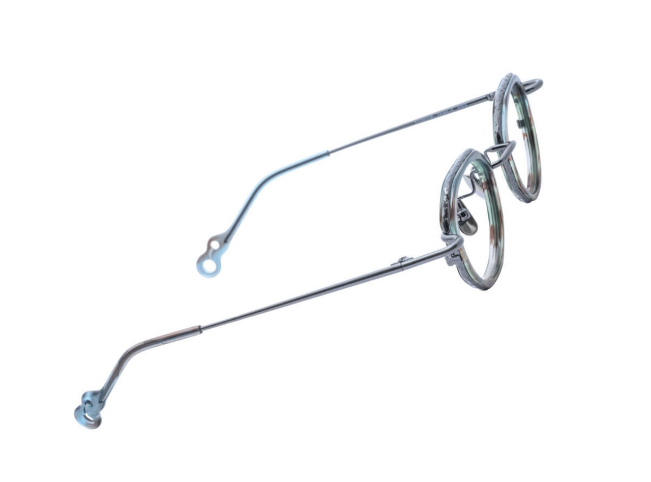 チタンとアセテートの色と質感の調和が美しいコンビネーションフレーム。