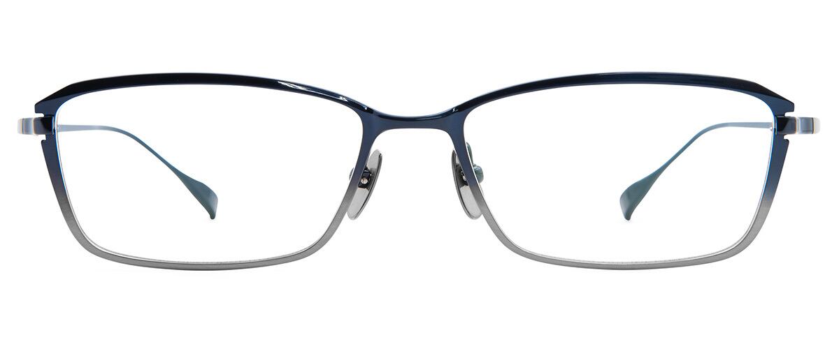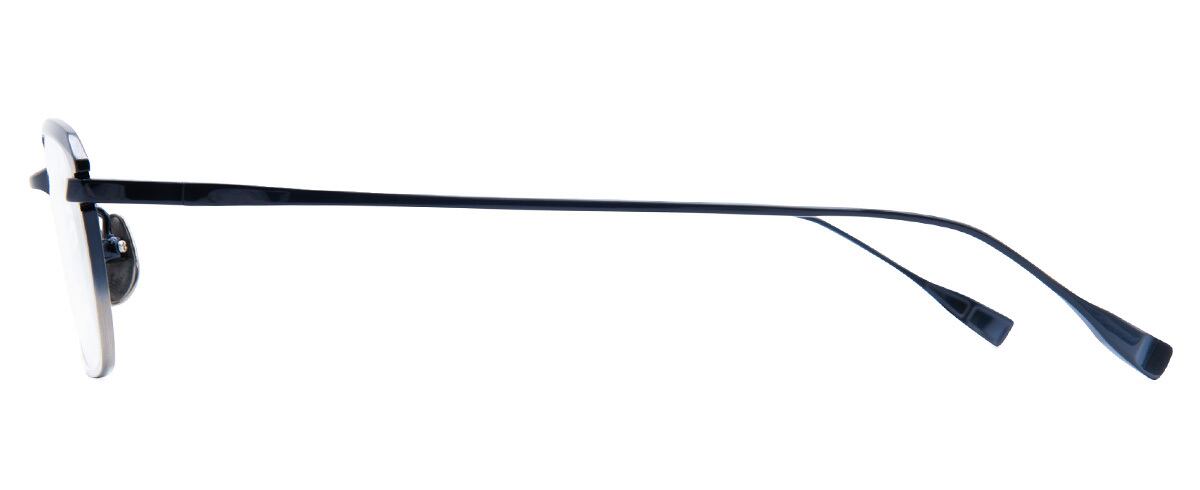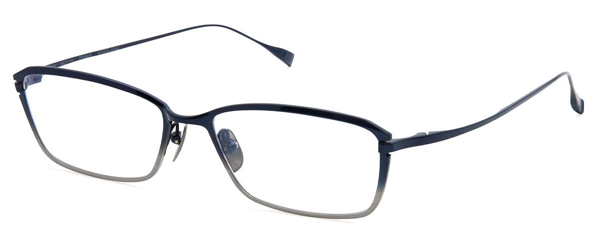 横幅を大きくもたせたLサイズのスクエアシェイプ。フロントはチタン板材をプレスと切削加工で丹念に作り上げ、特にフロント上部に施された斜め面カットはシャープで知的な印象を与えます。また、ヨロイの位置を一段下げることで程よいエッジと上質な雰囲気を兼ね備えた汎用性の高いモデルを追求しました。カラーリングは、メタルフレームの特性を活かしたソリッドな質感を表現。Col.02,04は熟練した職人の手作業によって美しいグラデーションカラーに染色。光の加減によって多彩な表情を見せます。