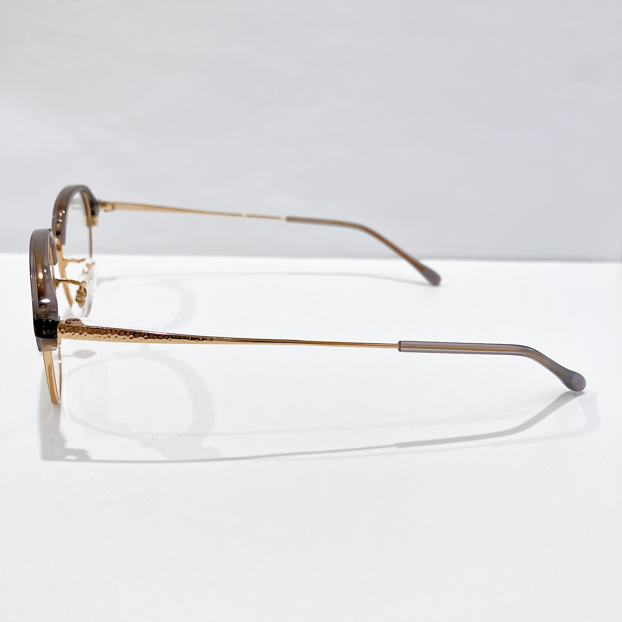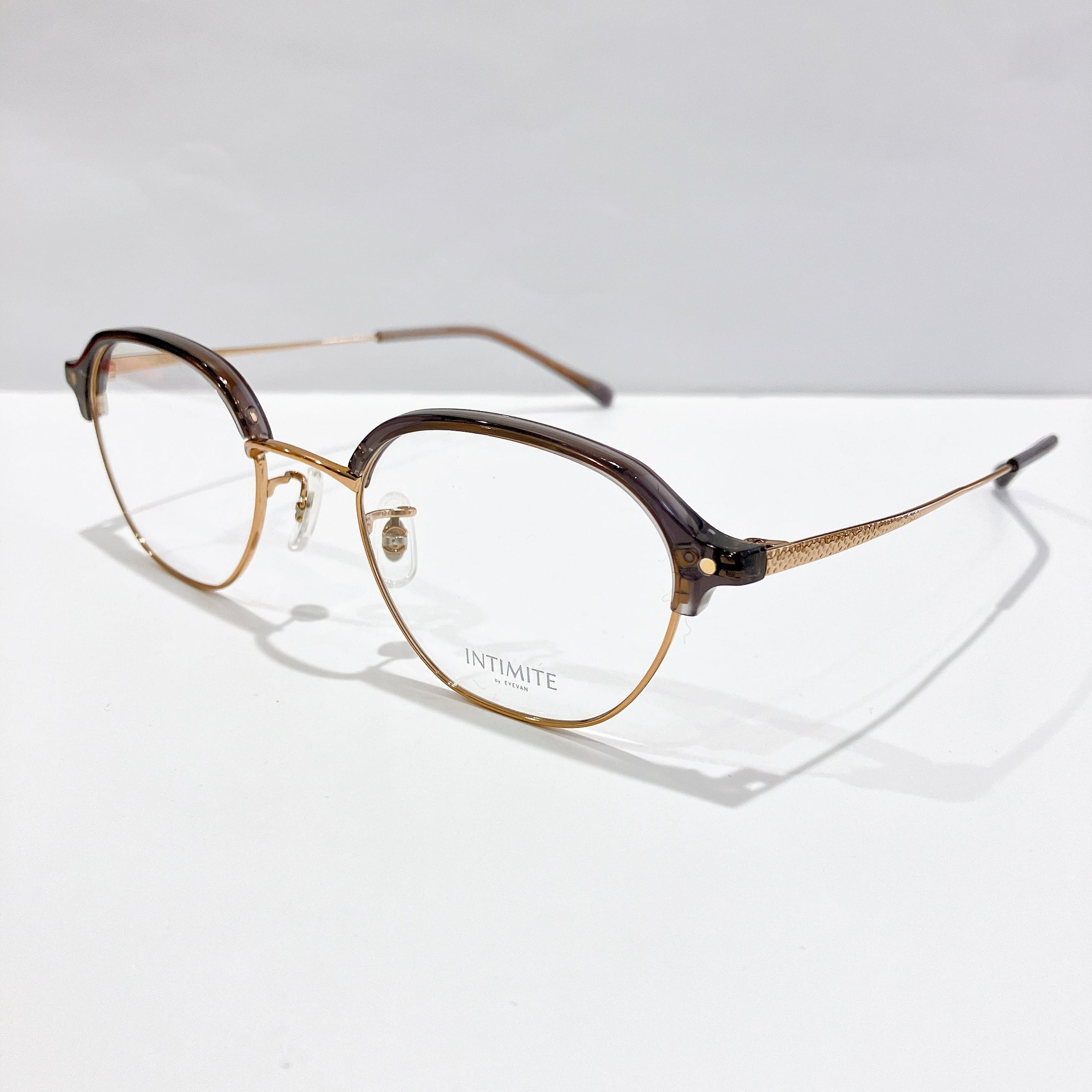 全体的にスクエア感を持たせながらINTIMITEらしくソフトな印象に仕上げたレンズシェイプによるサーモントモデル。セルブローパーツにマニッシュカラーとフェミニンカラーをバランス良く取り入れたAgelessなラインナップ。