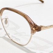 全体的にスクエア感を持たせながらINTIMITEらしくソフトな印象に仕上げたレンズシェイプによるサーモントモデル。セルブローパーツにマニッシュカラーとフェミニンカラーをバランス良く取り入れたAgelessなラインナップ。