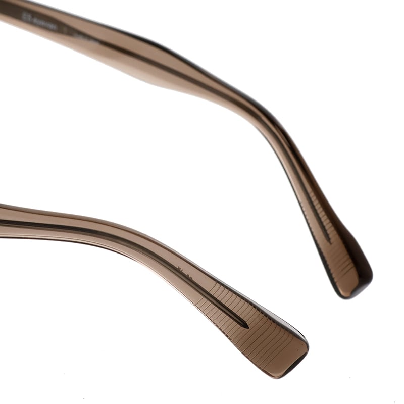L字型の特殊な形状を有した丁番は、掛け心地の良さとオプティシャンによる調整のしやすさという目的を追求した結果、生まれた形状です。アセテートテンプルは、適正な重量と側頭部へ接する面積を考慮して作製されたパーツ。強度と同時に軽さを追求して構築された全体のフォルムは全く無駄がない機能的な設計です。