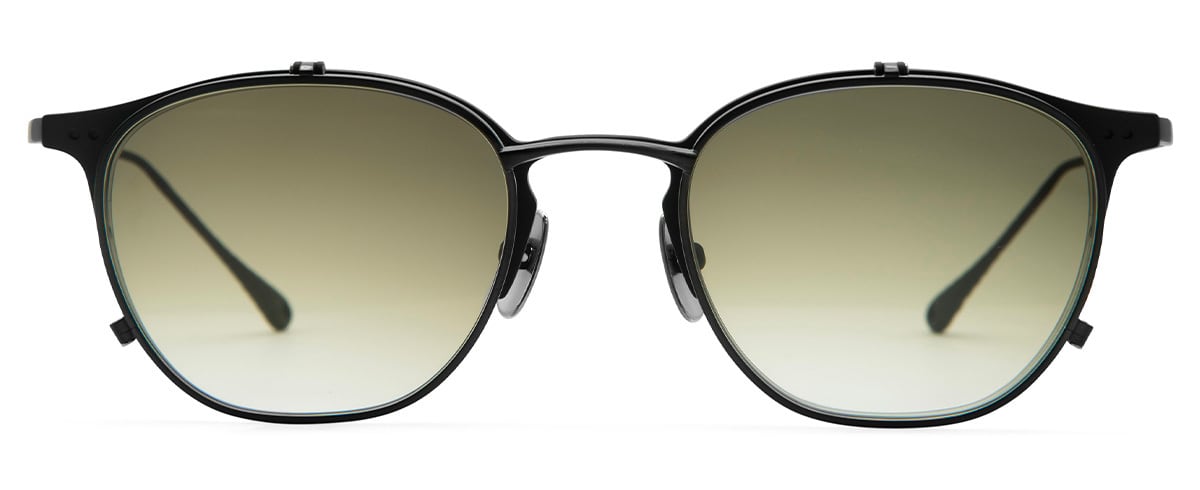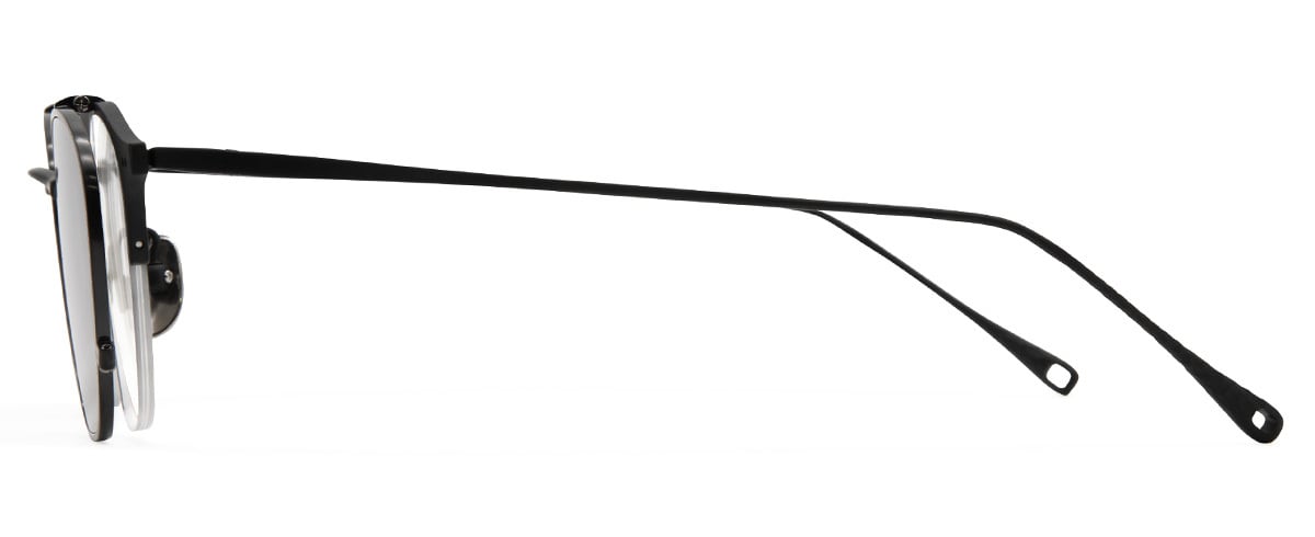 JS-158をリデザインしたボストンシェイプの複式跳ね上げモデル。フロントサイズを1mmアップして癖のないベーシックなデザインに微調整、さらに単式跳ね上げとしても使用可能なサイジングで再設計し、用途に応じて複式・単式の使い分けが可能となりました。繊細なラインのリムパーツは緻密なバランスで構成され、跳ね上げの機能性と快適性を兼ね備えた優美なフォルムに仕上げました。テンプルエンドにはシリーズのアイコンでもある鎚目模様を施し、金属を叩きかしめる事で生まれる鍛造特有の荒くも温もりのある表情には造り手の想いが宿ります。モダンはJAPONISMが独自に開発した着脱モダンを採用。Col.03はキメの荒いブラスト加工を施し、書道用具の硯(すずり)のザラザラした質感を表現しました。
