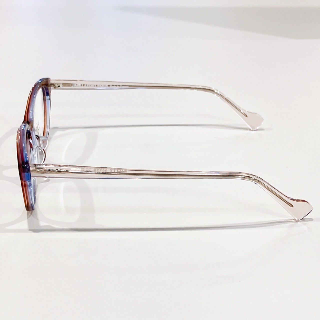 クラシックなフレームラインをベースに、繊細な柄や独自のカラーコンビネーションを取り入れることで、掛ける人の表情を華やかに引き立てます。