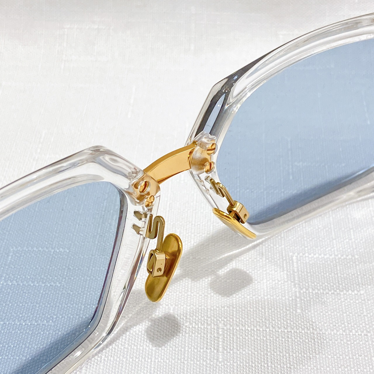 大胆なスクエアシェイプと抜け感のあるアセテートが、洗練された印象を演出します。