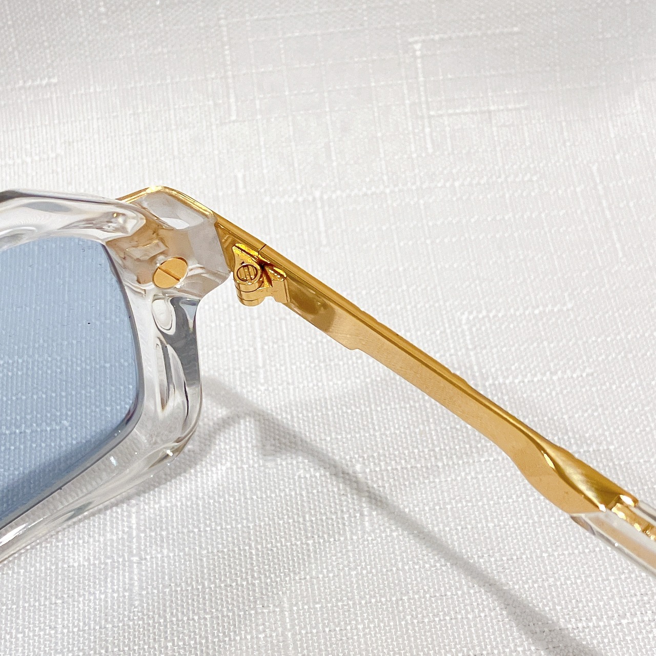 テンプルには細かなエンボス加工が施され、サイドからの表情にも高級感とアクセントをプラス。