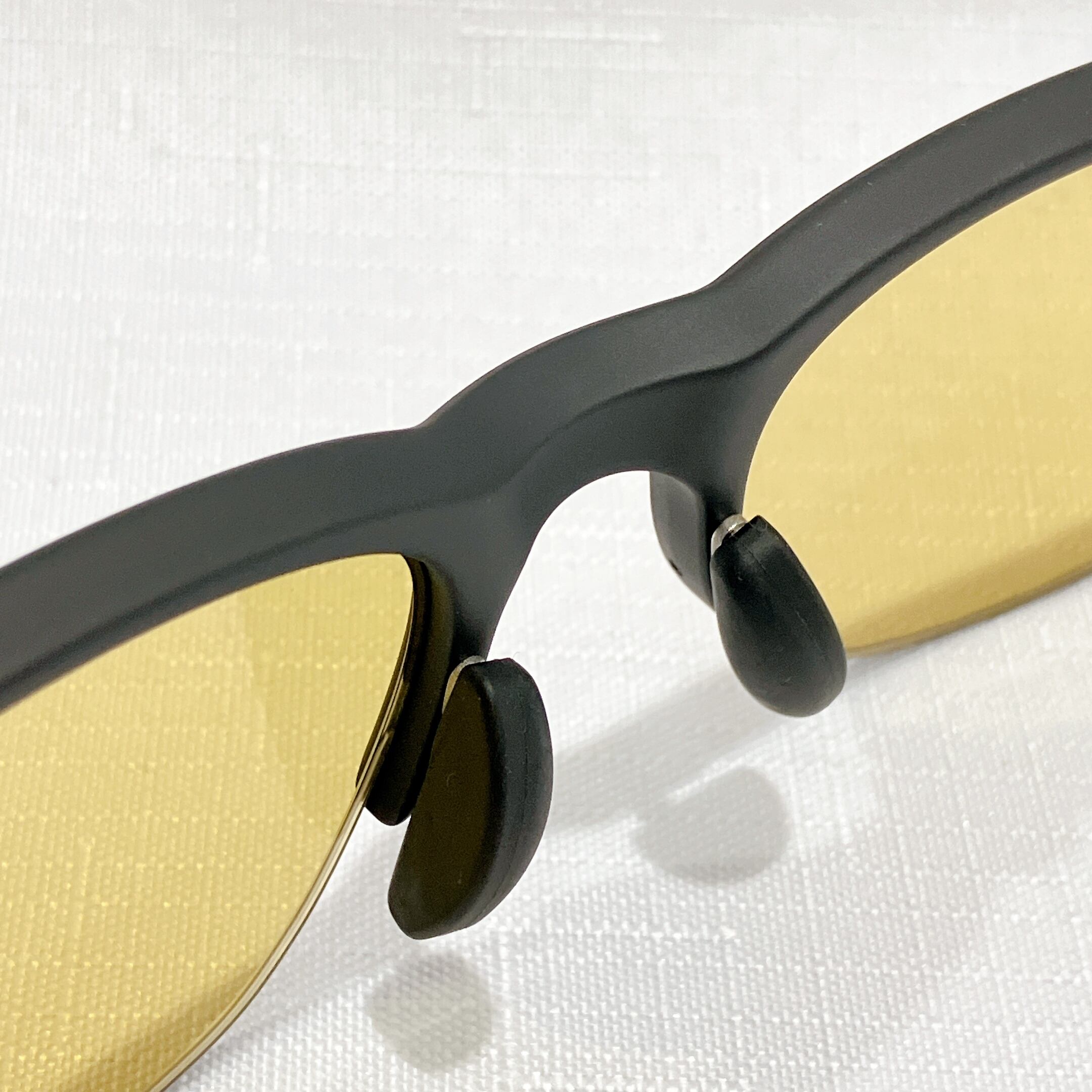 MRは一般的に高屈折レンズで使用されるレンズ素材であり、既成のサングラスではほとんど採用されることのない高級素材です。粘り気のある素材の特性から耐衝撃性に優れ、安全性が高く、耐候性にも優れ経年による変色も少ないことが特徴です。