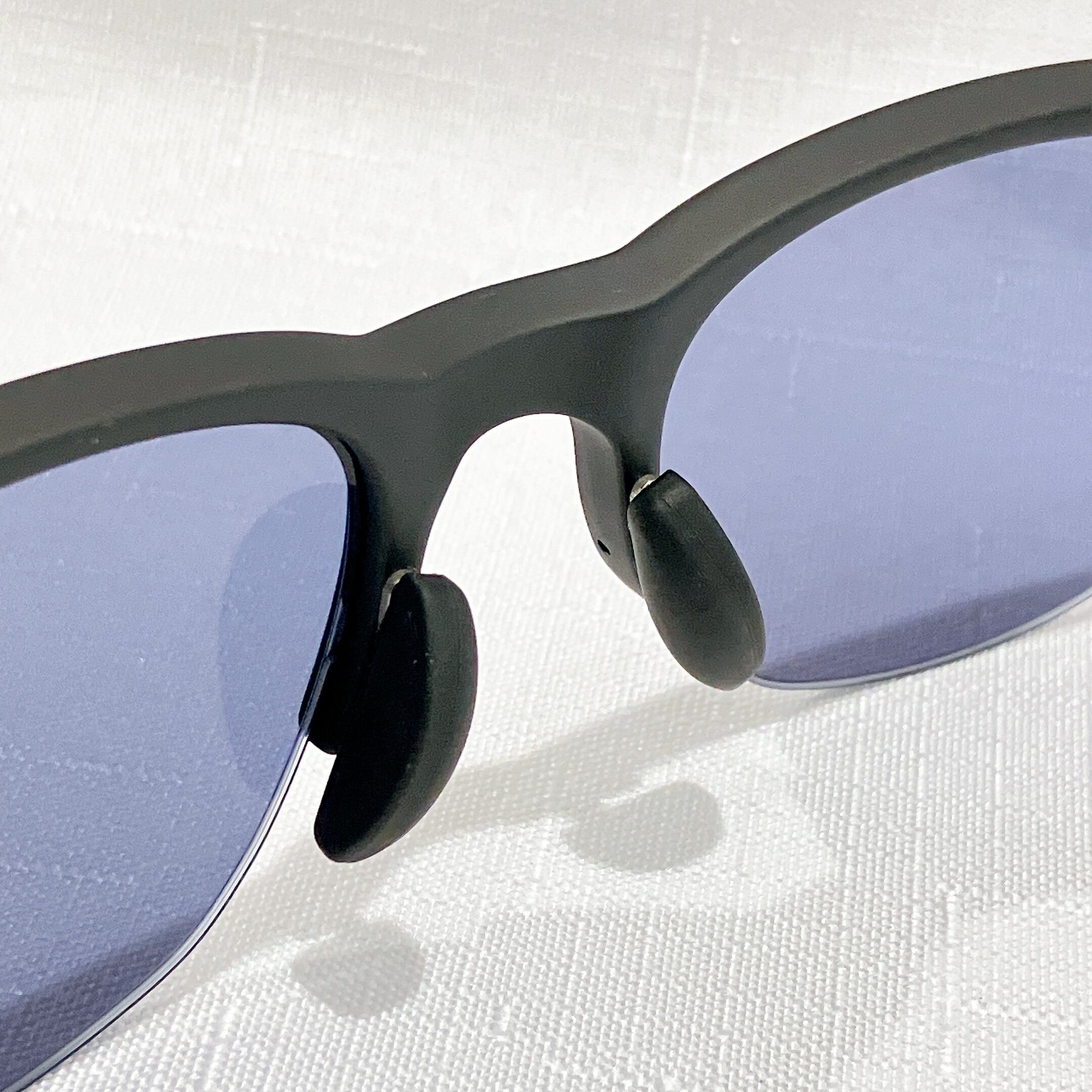 MRは一般的に高屈折レンズで使用されるレンズ素材であり、既成のサングラスではほとんど採用されることのない高級素材です。粘り気のある素材の特性から耐衝撃性に優れ、安全性が高く、耐候性にも優れ経年による変色も少ないことが特徴です。