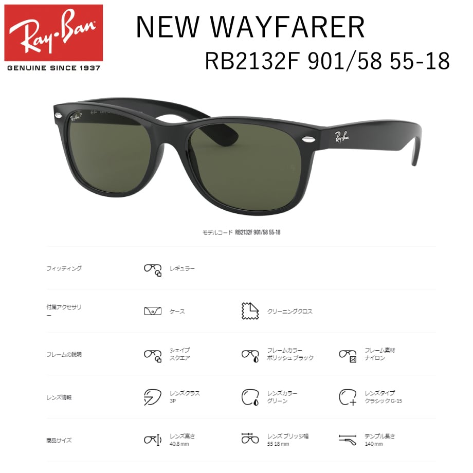 【店頭販売にてSOLDOUT表記】レイバン サングラス RB2132F 901/58 55 ニューウェイファーラー Ray-Ban NEWWAYFARER
