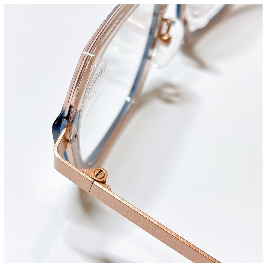 特徴的なヘキサゴン(六角形)シェイプのモデル。プロー部分は幅広のフラットドリルでカットするミリングと呼ばれる手法で2層目のセル生地を見せています。個性的なデザインではありますが、サイズは思ったより小振りでお洒落を楽しむ方にはおすすめのモデルです。